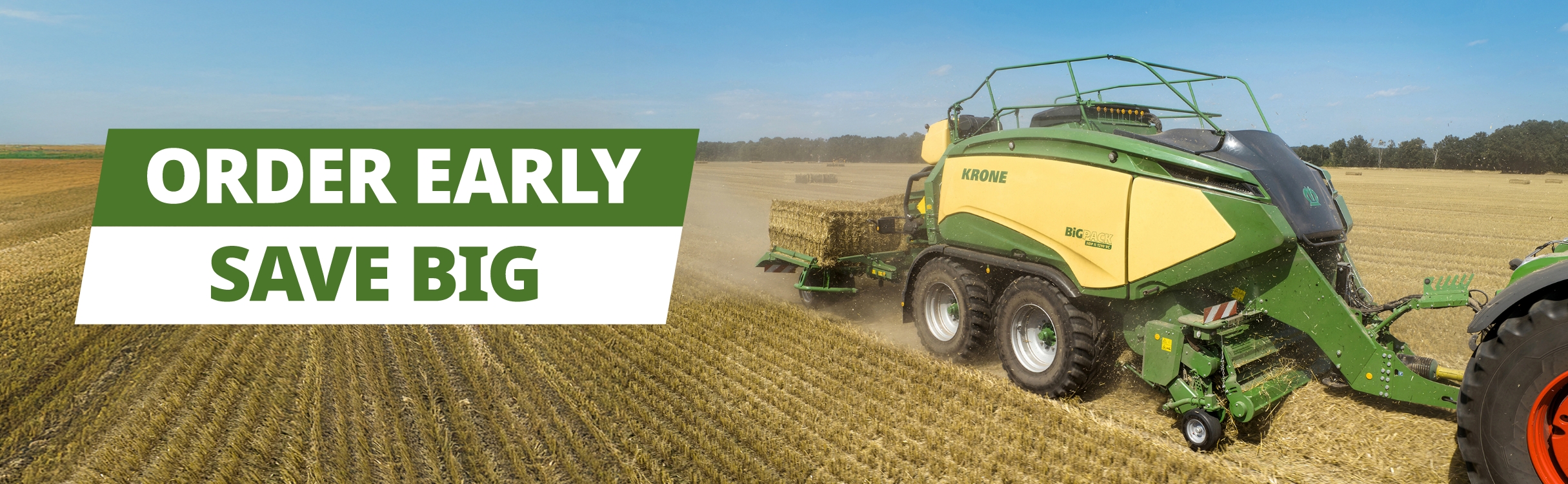 Krone BiG Pack balers deliver high-density bales with advanced knotting systems for durability. The HDP II models offer maximum throughput and density, ideal for large-scale operations. Features include a hydraulically adjustable crop press roller, Variable Filling System, and PowerClean technology for knotter maintenance.